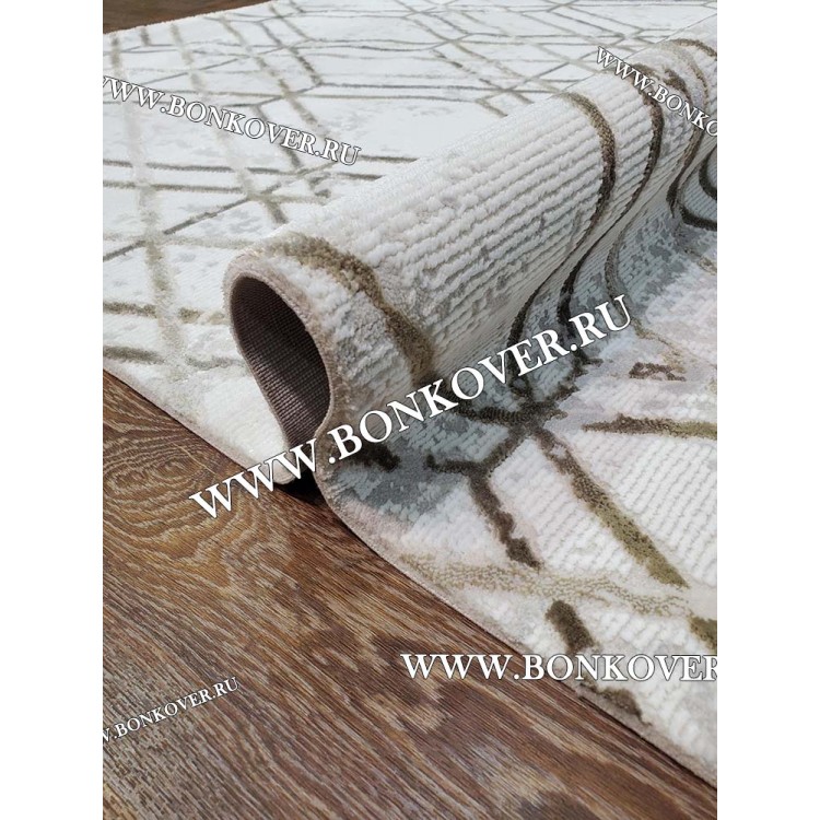 Изящный Ковер Для Гостиной Бежево-коричневый Ромбы Дизайн 33 наполняет интерьер жилого пространства теплом и уютом, гармонично сочетает в себе изящество и стиль. Он соткан из высококачественных материалов, комфортный и долговечный.
