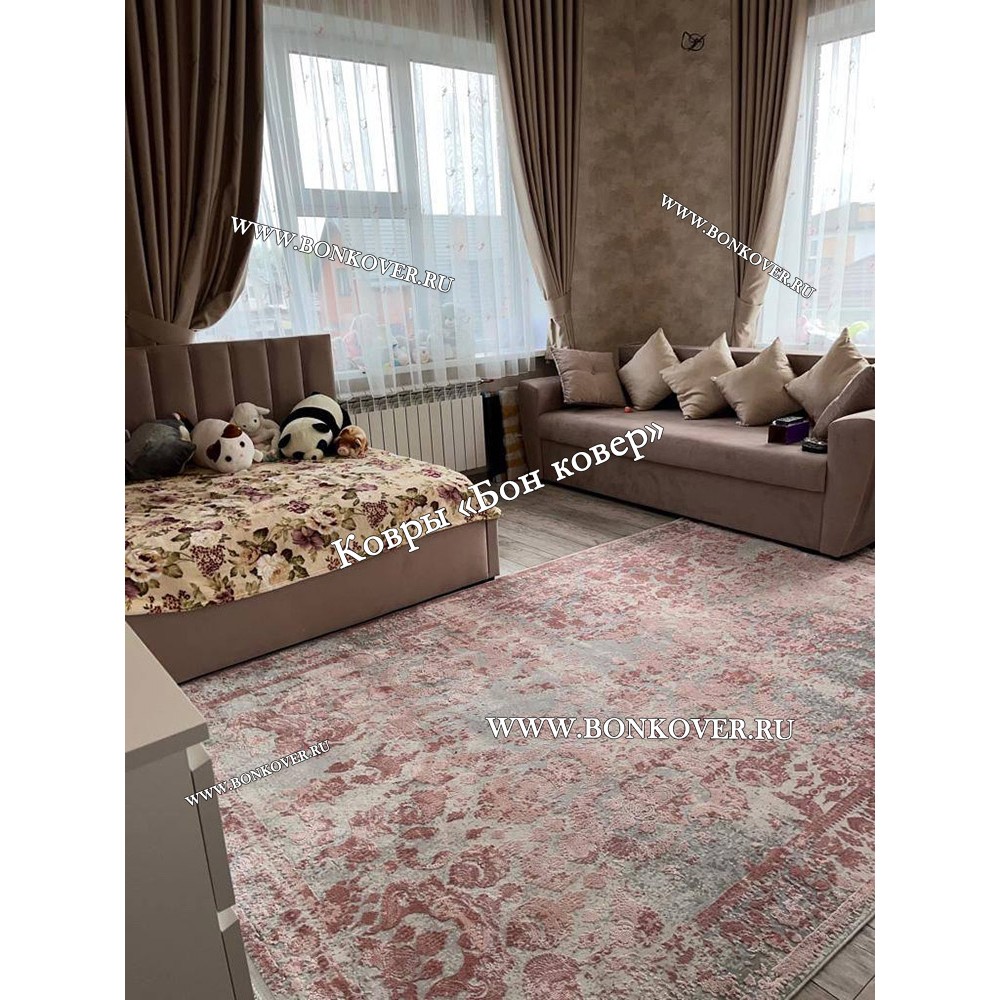 Шикарный Современный Турецкий Ковер Дизайн 30672 Розовый С Серым наполняет интерьер помещения теплом и уютом, гармонично сочетает в себе изящество и красоту. Он выполнен из современных материалов, прочный и долговечный.